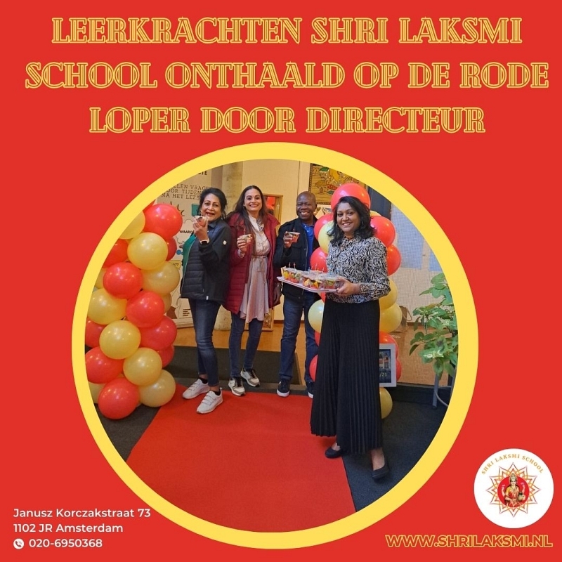 Op onze school in Amsterdam werden de leerkrachten verrast door hun directeur: met een feestelijke binnenkomst en een heerlijke fruitsalade zette zij al het personeel in het zonnetje. Zie foto van de Shri Laksmi School.